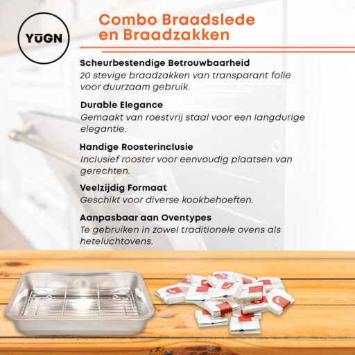 Wil jij ook genieten van de lekkerste gerechten uit de oven? Koop dan nu de YUGN braadslede & braadzakken set en geniet van al het lekkers uit eigen keuken.