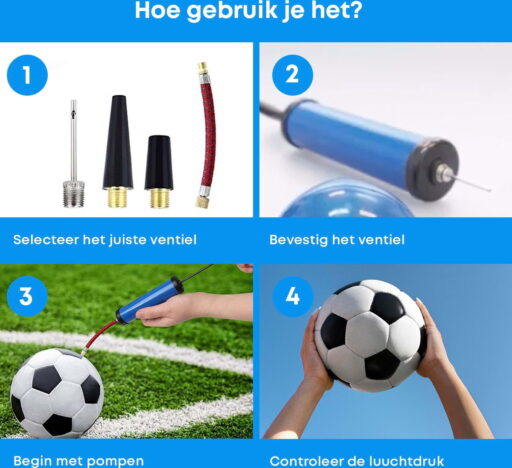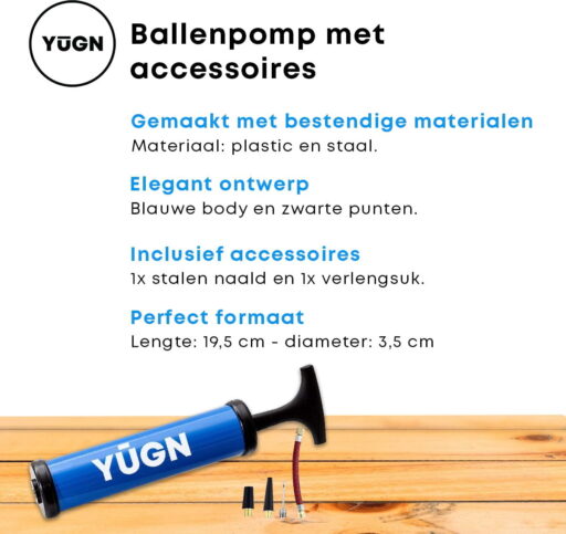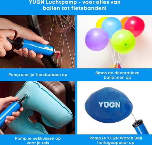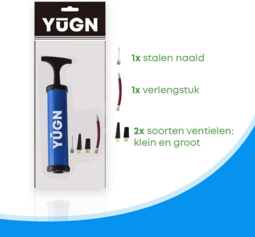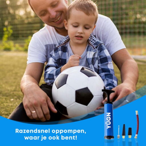 Met de ballen pomp van YUGN kun je alles op pompen. Je kunt alle ballen oppompen zoals een voetbal, basketbal, volleybal, horloge bal, rugbybal. Het oppompen van al deze ballen is heel eenvoudig, want door het pompsysteem van deze ballenpompje blaas je al de ballen in een mum van tijd op.