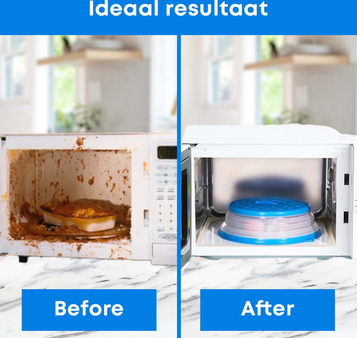 Spetters zijn vies en gaan op den duur ook stinken. Voorkom dit en plaats de YUGN magnetron deksel bij elk gebruik van jouw magnetron. Met de deksel voorkom je op een simpele manier dat de vieze spetters door de magnetron rond geslingerd worden. Schoonmaken van deze spetters is echt een crime, ze lijken wel van beton. Een tip: ben je toch vergeten om de YUGN spatdeksel magnetron te gebruiken en je hebt spetters, plaats dan twee kopjes water waarin twee lepels witte azijn en een paar druppels Citrus olie zitten. Zet de magnetron aan voor 3 minuten en laat het 7 minuten afkoelen. Maak dan met een lichtvochtige doek de magnetron schoon, een eitje.