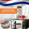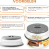 • Handige magnetron accessoires; Alle borden en bakjes, tot 21cm, kunnen eronder