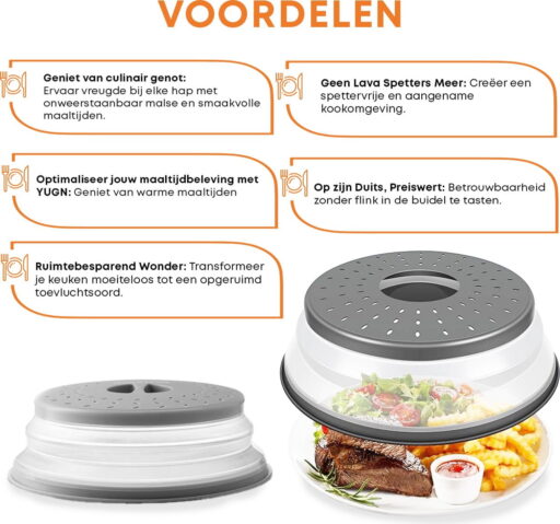 Hou jouw eten smakelijke, verser, gezonder en bedek altijd alles in de magnetron met de YUGN Magnetron deksel. Voorkom dat je je magnetron vuil wordt van binnen door explosies of spetters van jouw eten en gebruik de YUGN magnetron deksel. Bestel nu de makkelijke YUGN magnetron deksel!