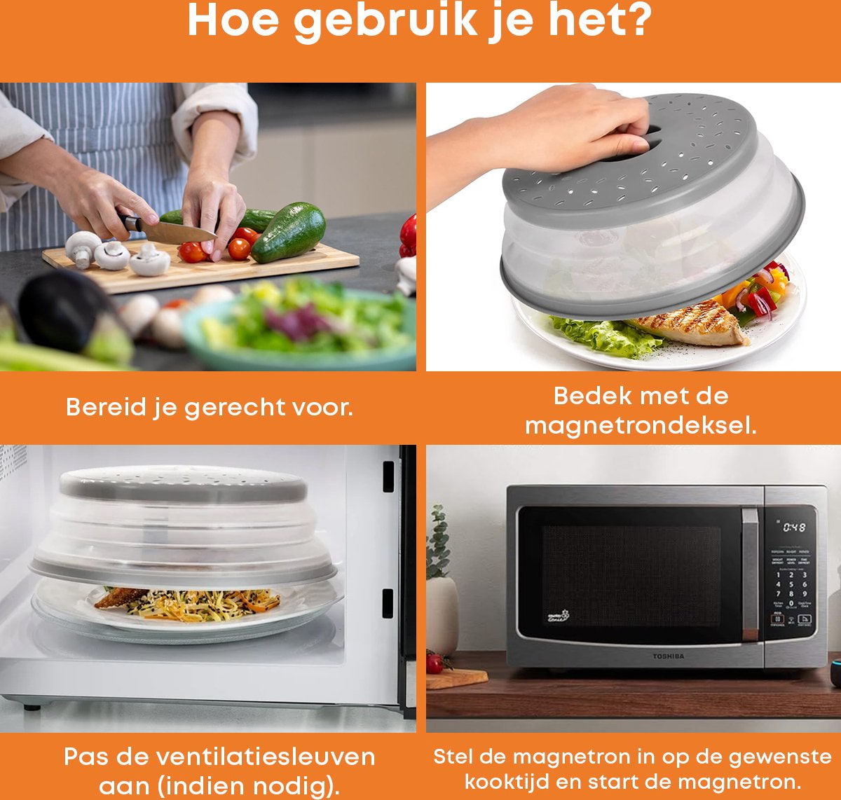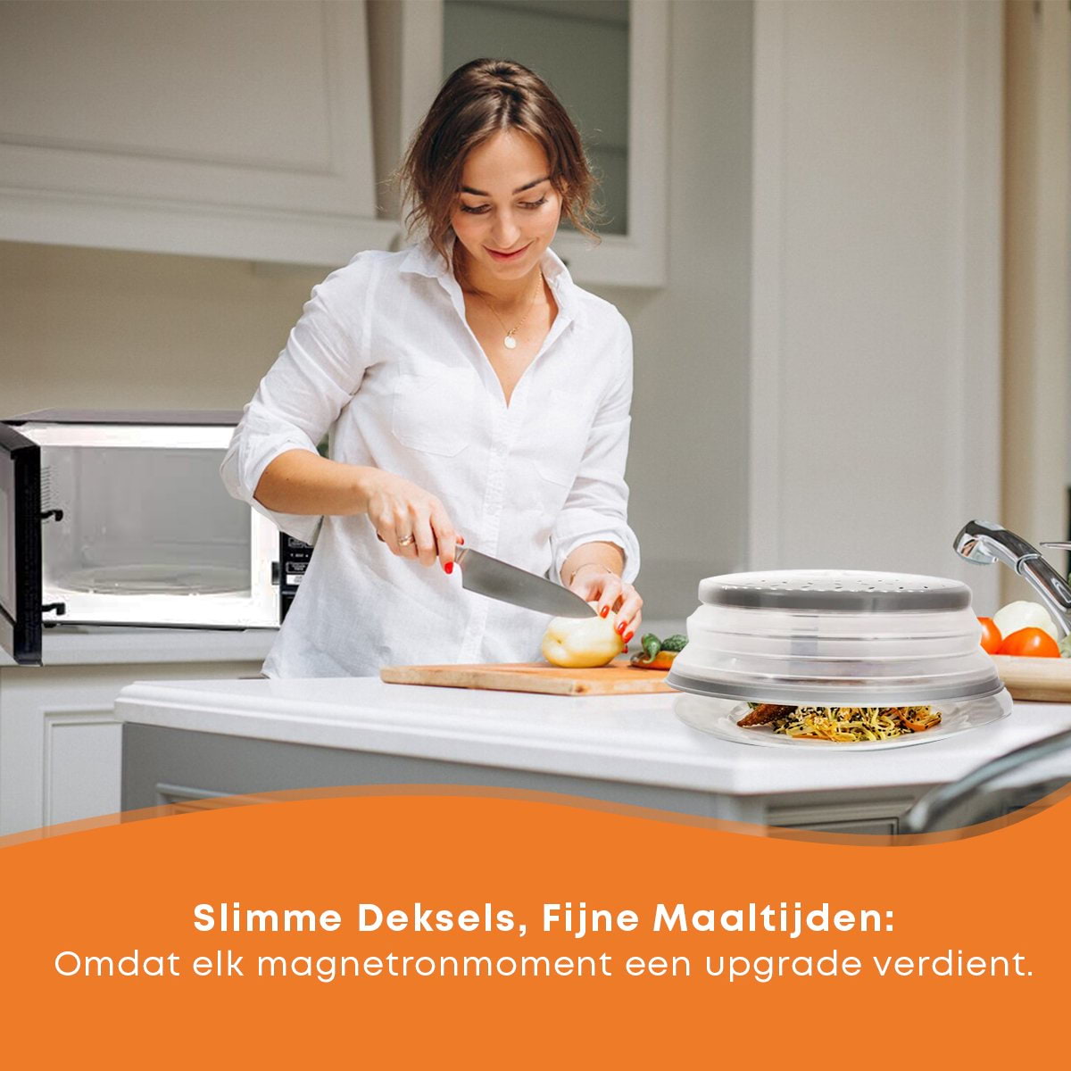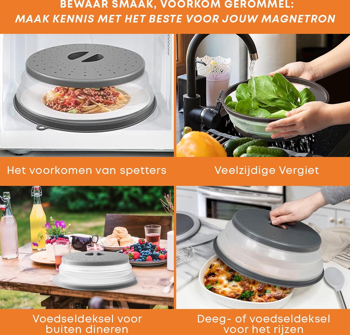 • Multifunctioneel; ook voor magnetron schalen, als magnetron afdekschaal en magnetronstolp