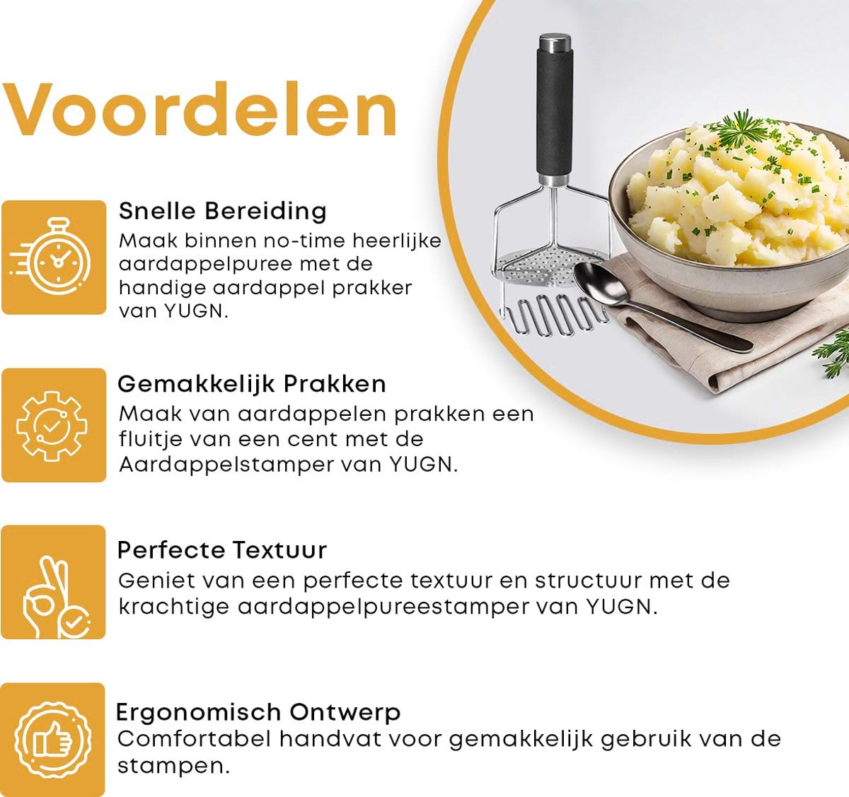 - Met de YUGN aardappelstamper maak je moeiteloos de lekkerste aardappelpuree!